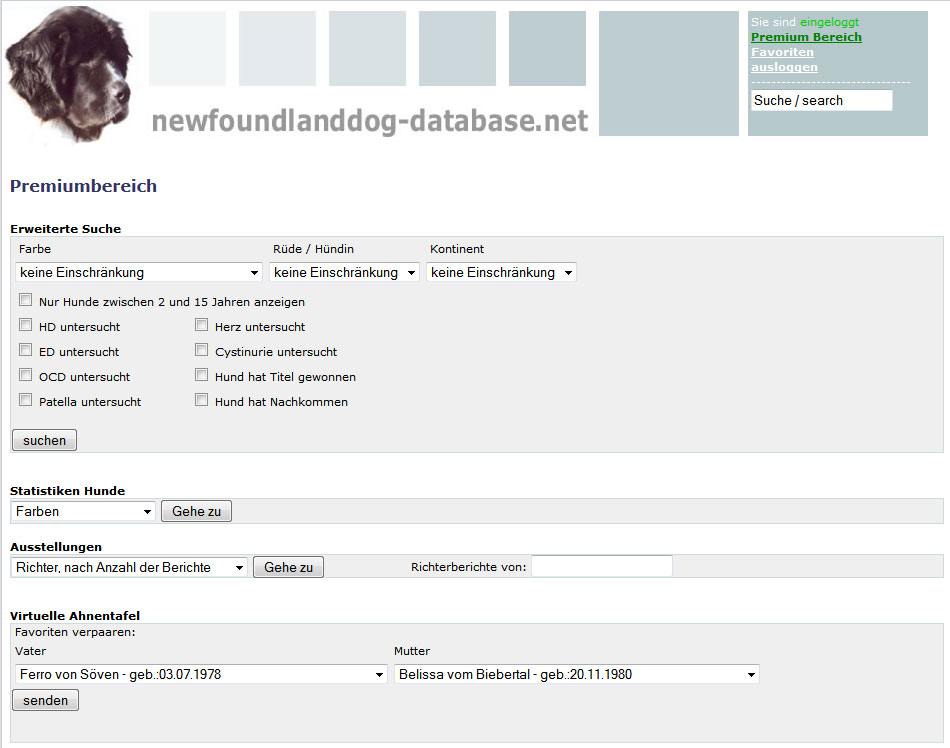 Damit Sie einen Eindruck bekommen, was Ihnen die Premiumseiten bieten, nachfolgend eine genaue Beschreibung. So sieht die Premium-Startseite aus: